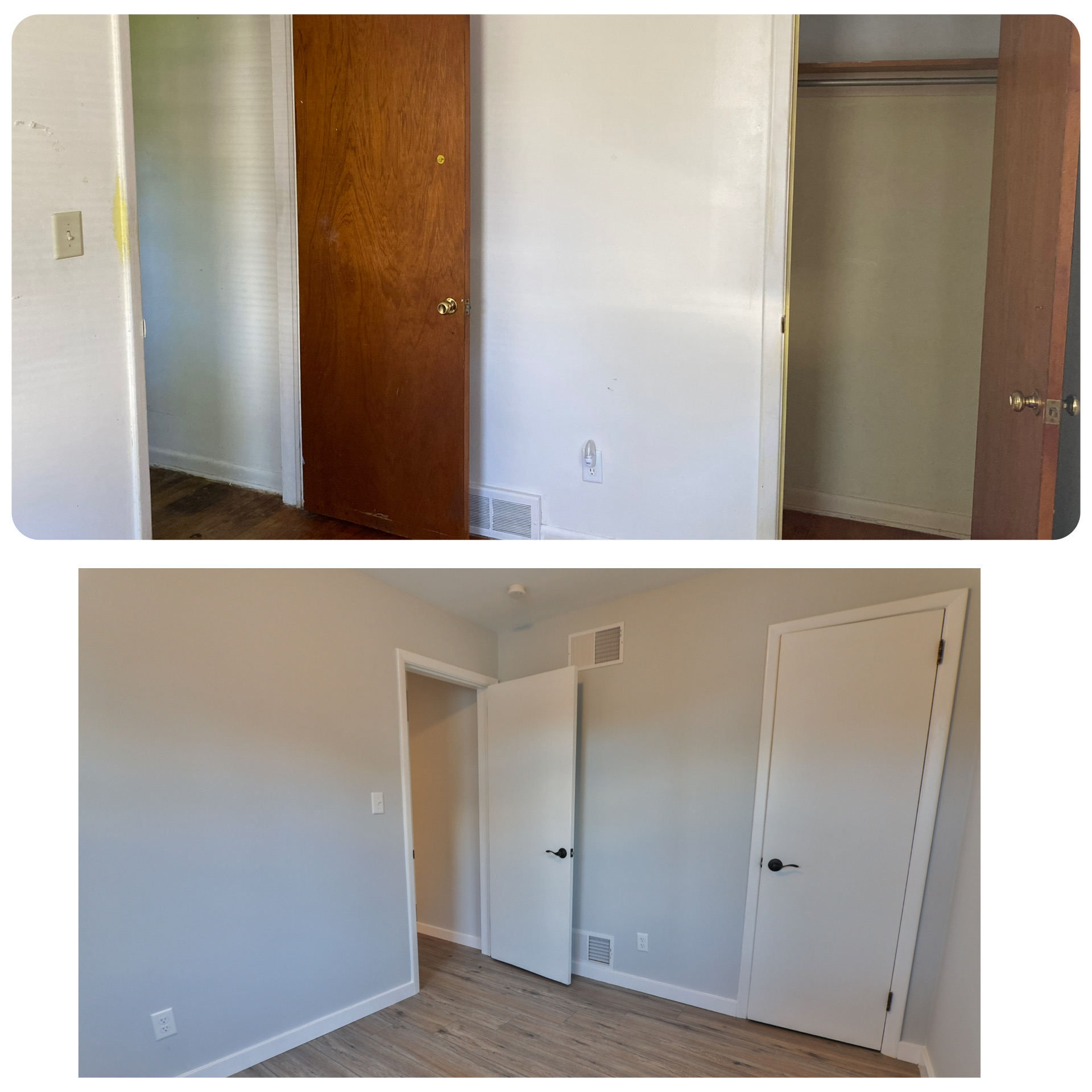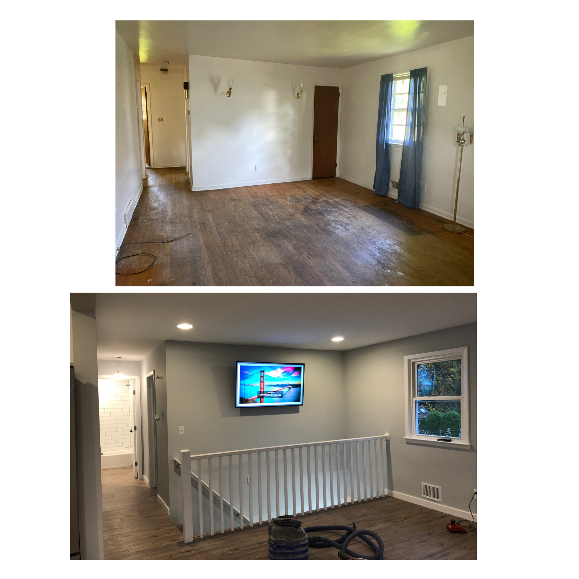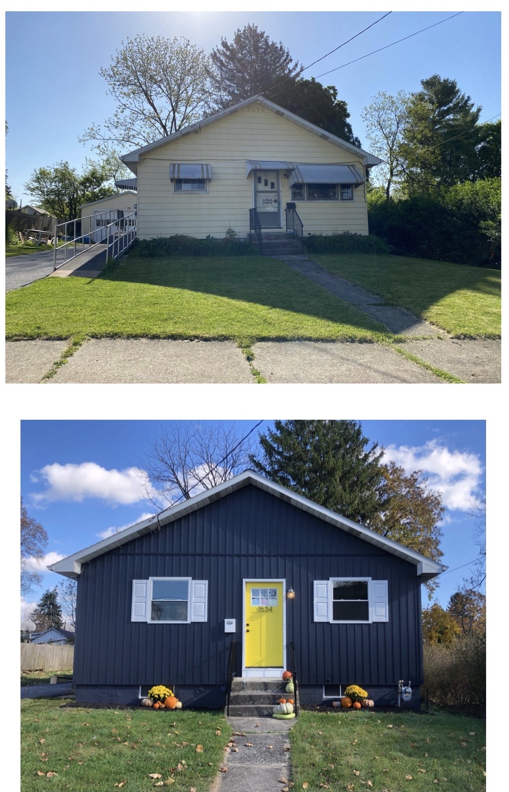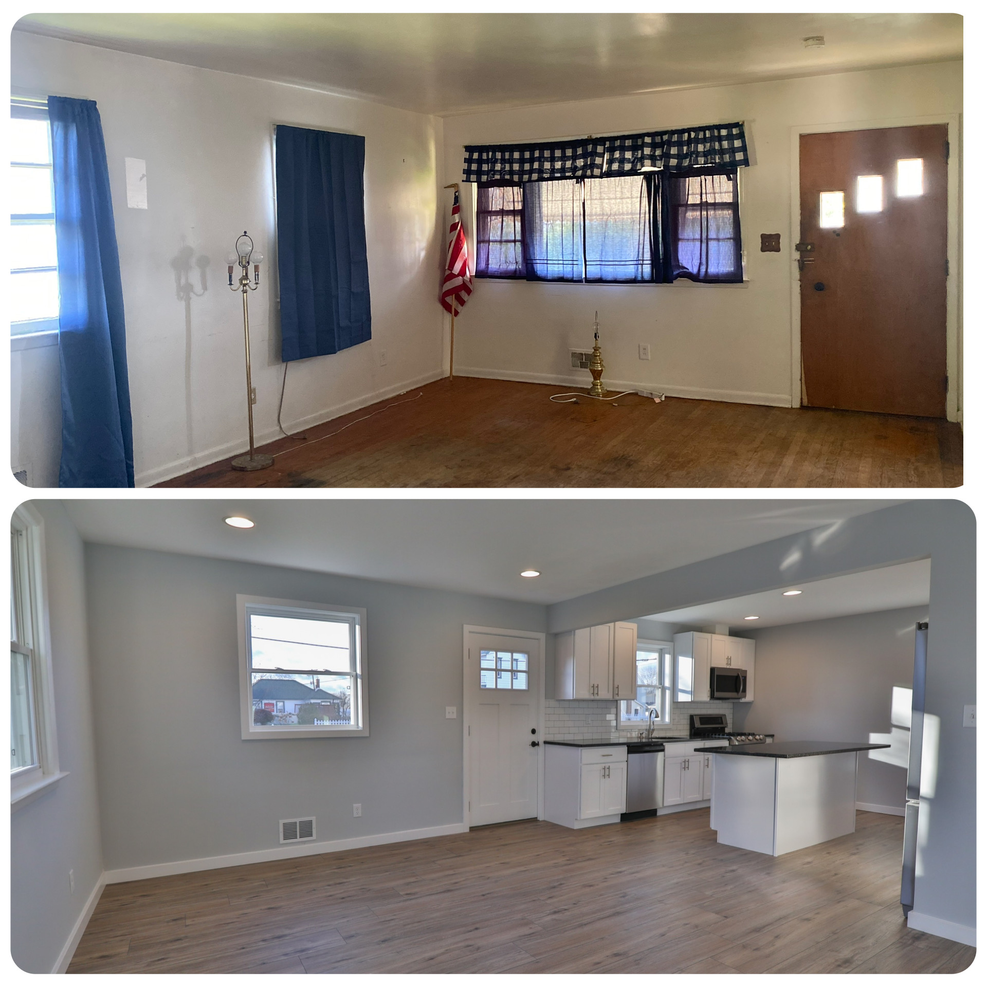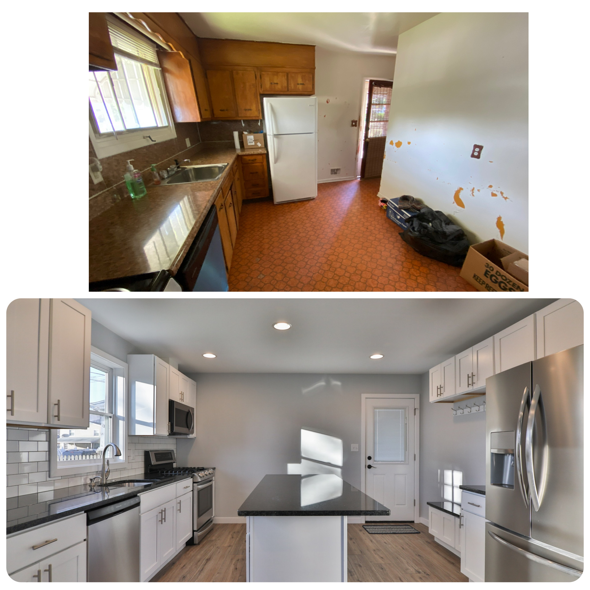This tiny ranch home was barley 1,000 square feet, but we maximized the space by tearing down walls and making an efficient kitchen the centerpiece. On the outside, we balanced out the windows and gave it a new look.